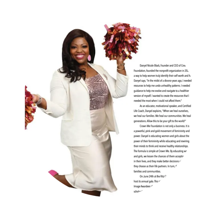 In 2020, Danyel founded Crown Me Foundation in an effort to restore and heal self, communities, and families. She recognized the need to support girls and women, especially those from traditionally marginalized communities, as they navigate life’s challenges and social adversities. Through effective programming, sustainable partnerships, and energetic volunteers, Crown Me Foundation has positively impacted the lives of countless girls and women, continuing to blaze trails with its signature Pink & Gold initiatives.
